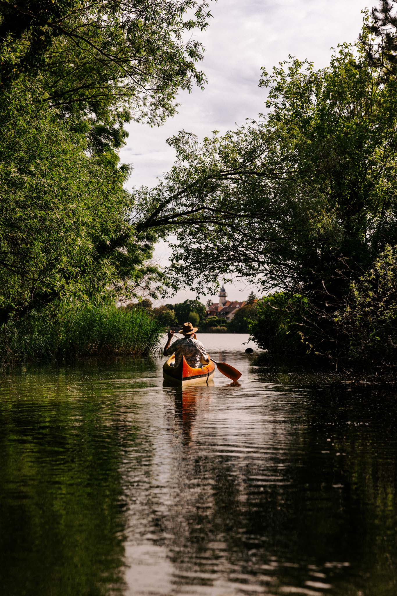 Itt megy előttünk éppen a Balabán hajó, sétautakat tesz, arról a csatornáról kapta a nevét, ahol majd nemsokára mi is evezni fogunk, az egyik kedvenc helyszínem a környéken. Ráckeve híres a csónakos piacáról is, ennek itt több száz éves hagyománya van. A mai napig teljes természetességgel járnak az emberek csónakkal, motorcsónakkal vagy kenuval vásárolni. Aztán beszállnak a cekkerekkel a hajóba, és hazatérnek a „zsákmánnyal”. Nagy, bőséges piac, leveszöldséggel, fűszerrel, kenyérrel, megannyi kézműves termékkel. Ez a varázsa a kisközösségeknek: olyan viszonyrendszerük van, olyan lüktetésük, ami a nagyvárosban elvész. Ott a lépcsőházban lévőket is alig ismered, itt beszélgetsz a szomszéddal.