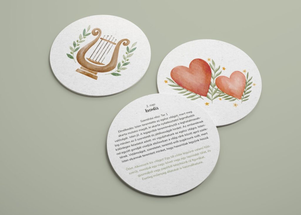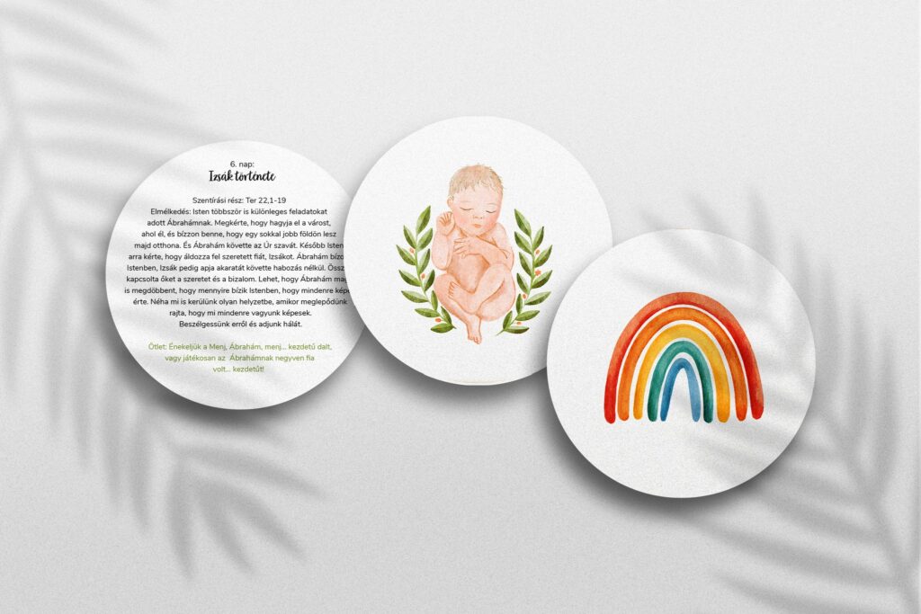 Ha a kezdőbetűket visszafelé összeolvassuk, az jön ki, hogy „ero cras”, azaz „holnap érkezem”. És hogyha a 24-it is belevesszük, ami úgy kezdődik, hogy „Venite” azaz „jöjj”, akkor a „vero cras”, azaz „valóban érkezem” jön ki. Az advent utolsó hét napjára arra hív minket az egyház, hogy Jézust helyezzük a fókuszba. Beszélgethetünk a gyerekekkel ezekről a szimbólumokról: mit jelent az, hogy kulcs? Milyen zár nyílik itt ki? Mit jelent az, hogy Jessze gyökere? Miért gyökér a számunkra? Jessze fája címmel készítettem egy adventi naptárként is használható kártyasorozatot minden napra más szimbólummal, amely mögött egy ószövetségi történet vagy Jézusra vonatkozó előkép jelenik meg.