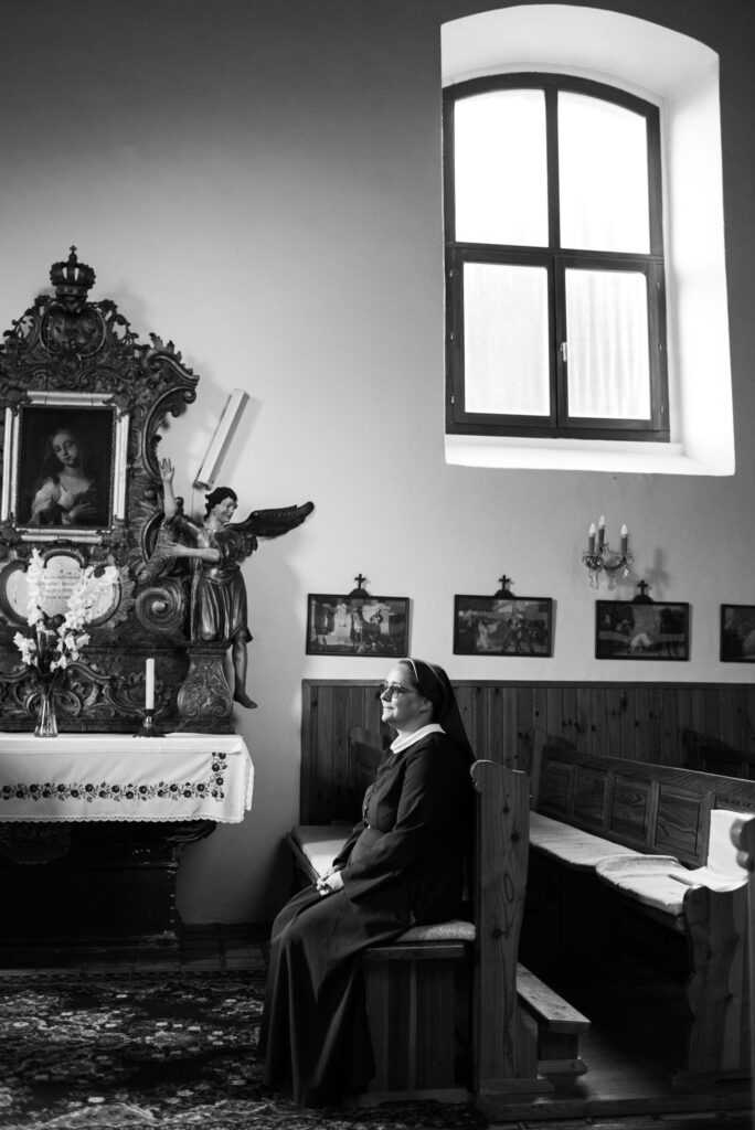 Kétszáz éves templom kertje, falusi plébániaépület, beszélgetésekre fenntartott fehér szoba, a falon feszület. „Te tudod, mit szeretnél, kérdezz” – mondja Rita nővér. Csak a végére esik le, hogy talán épp azon a széken ülök, ahol lelkivezetőként máskor ő – leginkább – hallgat. „Nem vezetek én senkit, kísérek. Az a dolgom, hogy figyeljem, hogyan működik az Isten egy másik ember életében. Ez a hogyan emberi logikával ki nem fürkészhető, de felismerhető.