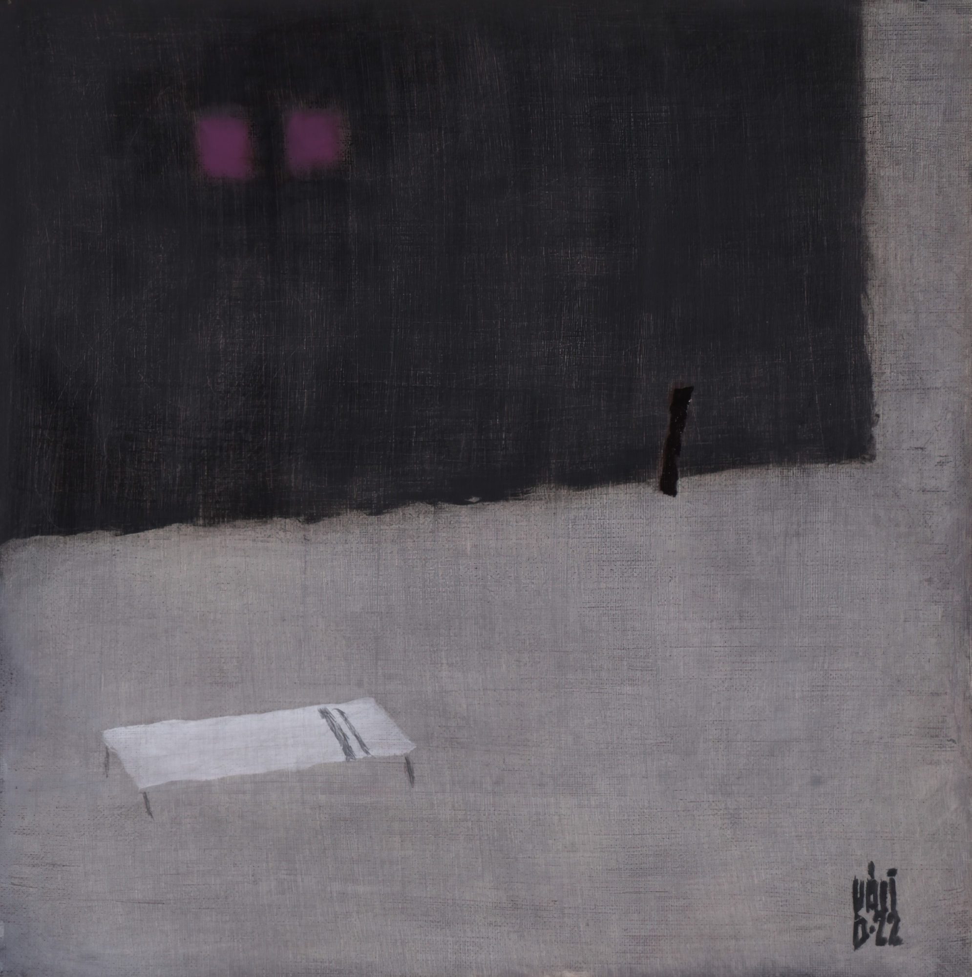 Idén tavasszal ültünk egy barátommal a budai pihenőpark mesterséges dombjának kellemes gyepszőnyegén, és a második vagy harmadik száraz fehér nagyfröccsöt kortyolgattuk az este jótékony félhomályában. Az egyik pillanatban át- és felnéztem a Margit körúti békebeli, francia udvaros bérház legfelső szintjére, ahol egy fényesen világló műteremablak tűnt fel a sötétben. „Nézd csak, a Deske még dolgozik!”, mondtam, majd hosszú percekig némán néztük a mesterséges fény keltette nagy sárgásfehér felületet. És valóban, a város lassan nyugovóra tért, de az ablakok mögött megbúvó elefántcsonttoronyban – ezt most értsük a szó legnemesebb értelmében – a festőművész Váli Dezső még dolgozott. A barátom és közöttem pedig az volt a különbség ebben a konstellációban, hogy ő már járt ebben a műteremben, sőt eredeti Deske-festménye is van. Én viszont „csupán” az alkotó festményeiről ismerem ezt a belső világot: Váli Dezső évtizedek óta csak a műtermét festi, az enteriőrről e képek révén van elképzelésem. Vásznai azonban sokkal inkább belső tájak és transzcendenciába hajló személyes léttöredékek hordozói, semmint a Magyar Iparművészeti Főiskolát a hatvanas évek második felében belsőépítészként abszolváló alkotó objektív megfigyelései. Talán mert alapvetően magányos művész. Mindig is az volt. Igazi outsider, a mindenkori rendszereken és kánonokon kívüli szerző, aki soha nem követett senkit, annál inkább követi őt egy egészen jól körülhatárolható, időnként változó, formálódó alkotói közeg.