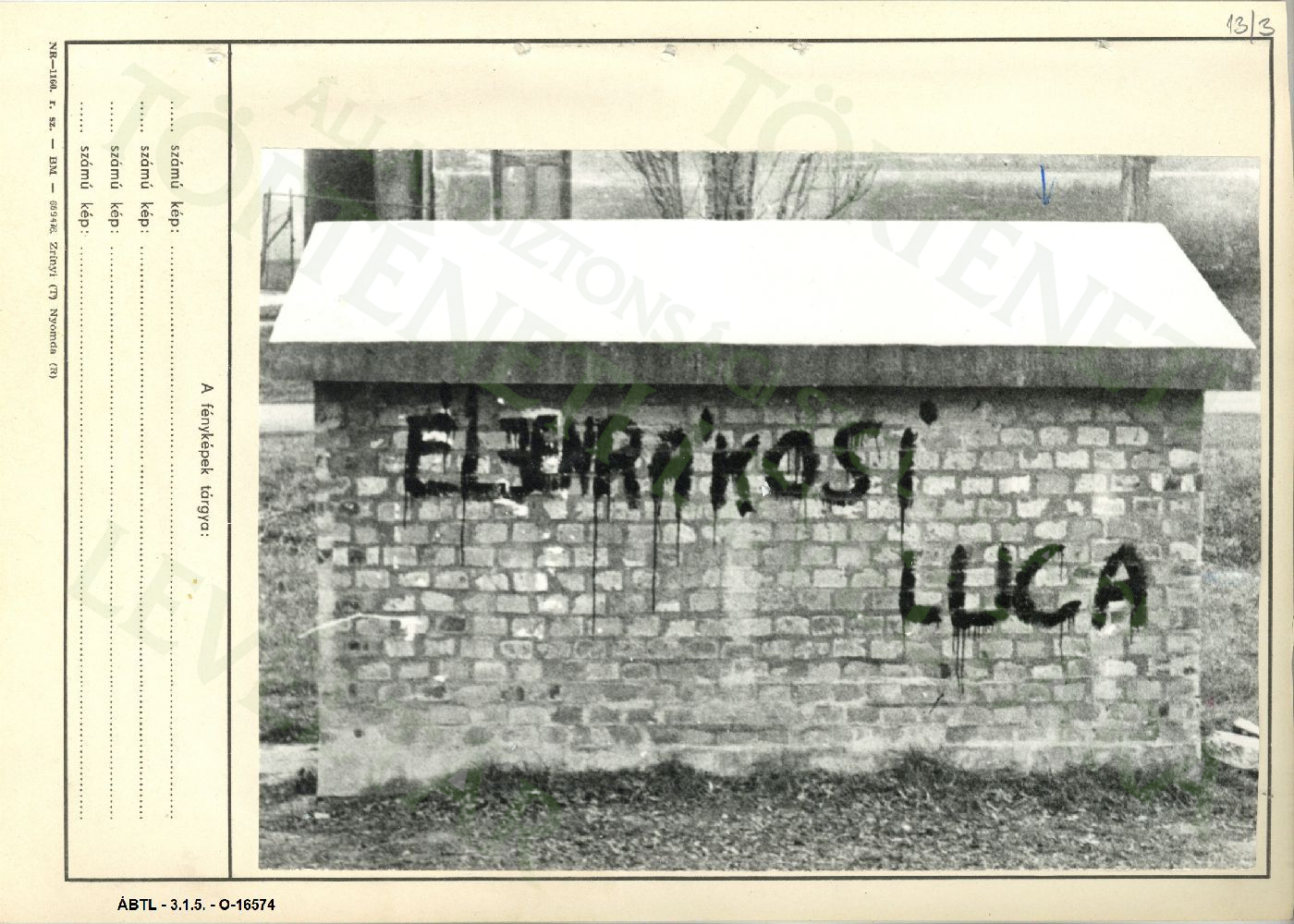A helyszínre kiszálló bizottság az italbolt falán »BÉREMELÉST ÁRCSÖKKENTÉST« és »LUCA«, a kultúrház falán »IGAZI DEMOKRÁCIÁT KÖVETELÜNK«, a községi könyvtár falán »SS«, a szivattyúház falán pedig »ÉLJEN RÁKOSI LUCA« feliratokat talált – ovlasható a posztban.