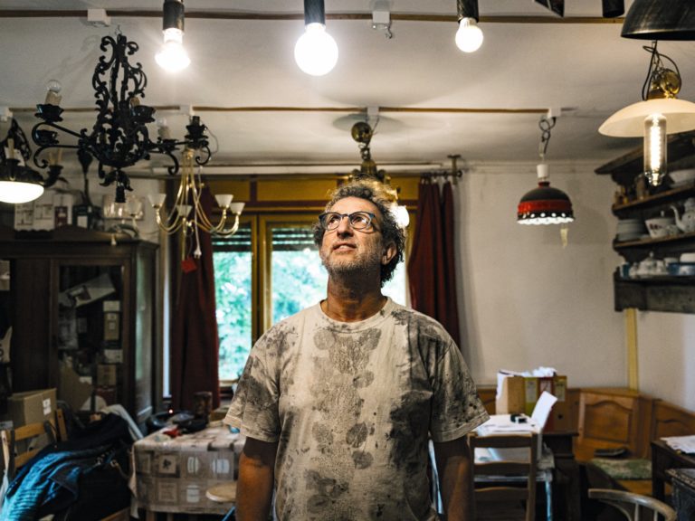 Mindkét ágon voltak fazekasok a felmenőim között, de a történelem megszakította a szálakat. Volt itt a faluban egy kerámiaüzem, az részben a nagyapámé volt, őt ki is telepítettek Vérteskozmára. Amikor a nagyanyámmal visszatértek, már inkább a cipészmesterséget választotta. Édesapám pedig villanyszerelő volt az akkor már államosított kerámiaüzemben, ahol én gyerekként szerettem lábatlankodni, nézni a kézi- és gépikorongos-részleget. Édesanyám szintén ott dolgozott, a kerámiafestőben. Én ott fertőződtem meg. Volt egy mesterem, Albert Attila, tőle tanultam meg, amit lehetett, amíg el nem vittek katonának. Az megszakította a folyamatot, de utána elkezdtem önállóan dolgozni. Mondtam a mesteremnek az elején, hogy kellene nekem egy fatüzelésű kemence, mert az nem volt. „Hát fiam, aztán pénzed van-e?” – kérdezte. „Nincs.” „Az baj. És anyagod van-e?” „Az sincs.” „Az még nagyobb baj.” Ez már a kilencvenes években volt, akkor bomlott fel az üzem, onnan anyagárban el lehetett hozni a kemencét, ha valaki elbontotta. Hívtam segítséget, elbontottuk, elhoztuk. Ebből indult a fazekasság.
