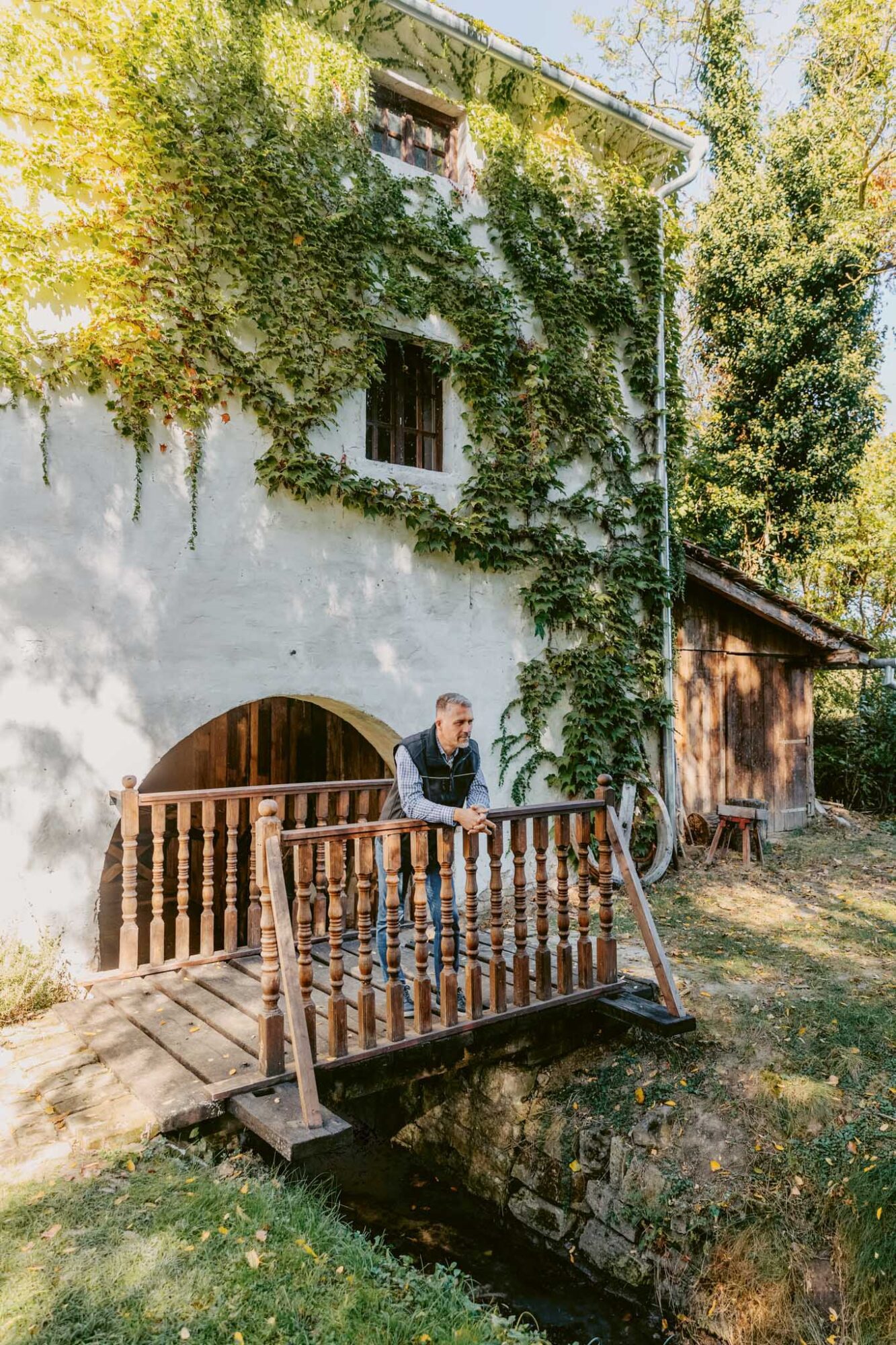 Először elmentem a szentendrei skanzenbe körülnézni. Ott találkoztam Sabján Tiborral, ő adott egy telefonszámot Márton László gyergyószentmiklósi mesterhez, aki több másik mellett a skanzenbeli vízimalmot is építette. Szent Miklós ugye a malmok, molnárok, hajósok, vízen járók védőszentje – nálunk, ortodoxoknál legalábbis, a katolikusoknál Nepomuki Szent János. Megkerestem, kérdezte, van-e pénzünk, mondtam, hogy nincsen, mire ő: nem baj, azért ha legközelebb erre jár, benéz. És tényleg, amikor jött Harkányba gyógyfürdőzni, átugrott, felmérte az épületet, közölte, hogy ehhez hárommillió forint kéne, és minimum tíz-tizenkét hónap. Abban maradtunk, hogy rendben, akkor szólok, ha valami csoda folytán meggazdagszom. Nagyjából egy év múlva jelentkezett, és hála a Fennvalónak, addigra pénzünk is adódott. Így történt, hogy 2009 óta újra van működő vízimalom-berendezésünk. Mellé öt év múlva, szintén Laci bácsival, építettünk egy taposómalmot is. Mindkettő alkalmas őrlésre is, bár a vízimalom – mivel nincs víz – inkább a látványt szolgálja.