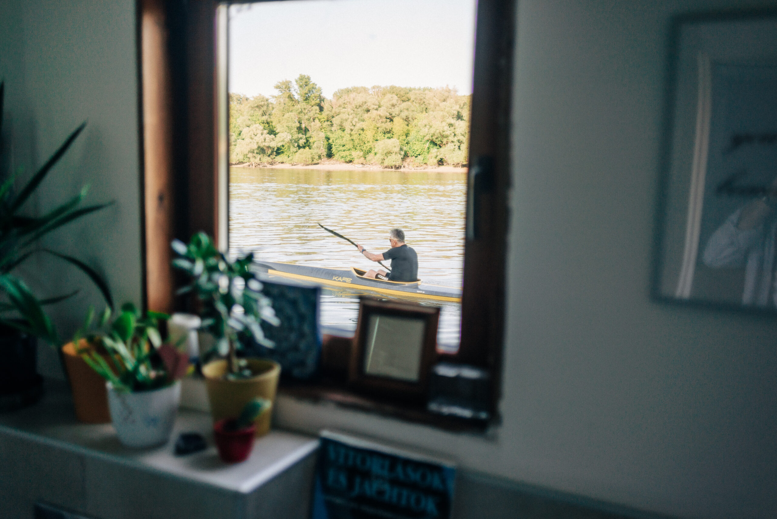 Gyuri hajnalban, munka előtt, ha teheti, evez egy órát. Hétvégi délutánokon átkenuznak szembe, a Szentendrei-szigetre kutyát sétáltatni, járni egyet. Esetleg eleveznek a szokásos büféhez zsíros kenyerezni. Ha árad a Duna, kicsit több a macera: kenuval indulnak iskolába. Így megy ez.