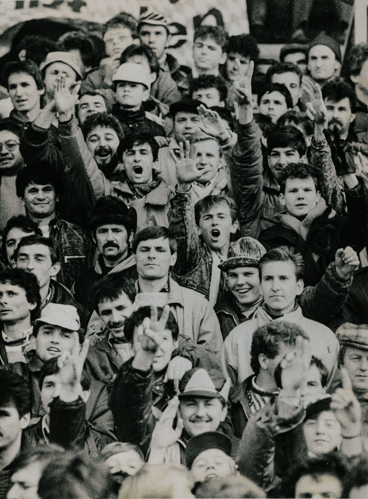 Sanyi bácsi felkapaszkodik a lelátóra, megyünk mi is vele. „Itt ismerik egymást az emberek. Mikor a pálya szélén fotóztam, sokszor kiabáltak a drukkerek: »Sanyi, minket is fényképezz le!« Le is fényképeztem, aztán volt, aki eljött a képért, volt, aki nem. Itt magyarul megy a szurkolás, magyarul kiabálják, hogy »mi vagyunk, otthon vagyunk, győzni kell!«. A legemlékezetesebb meccs a Bayern München elleni, meg a csehszlovák kupa megnyerése. Az nagy dolog volt. Az egész város ünnepelt.”