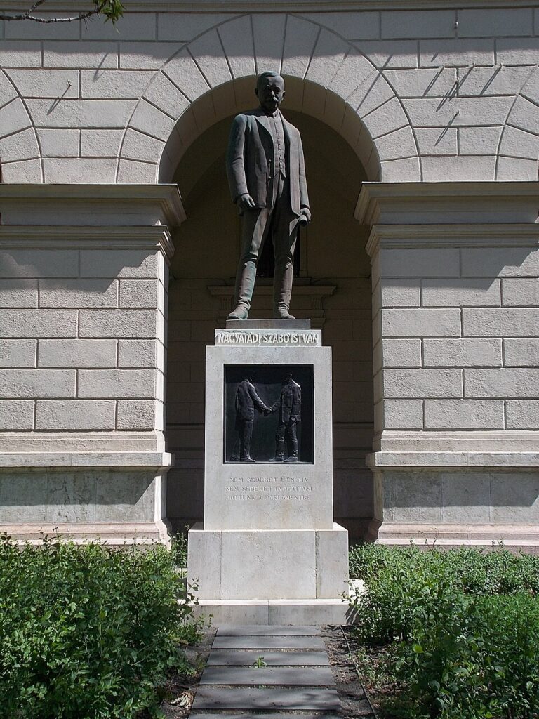 Nagyatádit, mint már utaltunk rá, 1919 elején a szocialisták kényszerítették halálos fenyegetéssel programja feladására, később a ravasz Bethlen István szorította őt partvonalra: az 1920-ban a Nemzetgyűlésbe beválasztott csizmás kisgazdáival egyetemben rövid úton megvesztegették, majd ezzel sakkban tartották őt. A Kossuth téren álló, 1932-ben Horthy, Bethlen és Gömbös Gyula jelenlétében felavatott szobra nem csupán egy mára feledésbe merült politikus emlékműve, de a polgárháborús logika továbbélése miatt soha meg nem kötött, történelmi kompromisszumoké is. A „fennkölt eszmék mögött dolgozó alantas vágyaké”, „győzelemmé stilizált kudarcoké”.