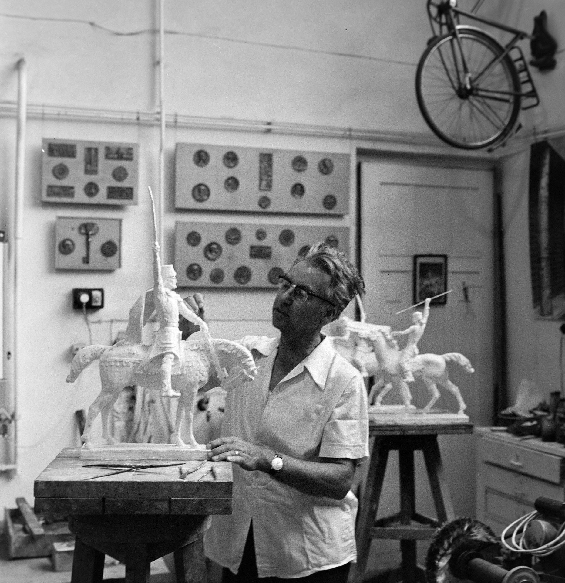 És mennyi minden volt, ami nem fért el a műteremben! Engem is meglepett, hány lovas szobra, szakrális munkája, köztéri szobra áll szerte az országban. Jusson eszünkbe például, ha a budavári Mátyás-templom előtt álló Szentháromság-szobor mellett sétálunk el: ő restaurálta 1968-ban, és ez jelentette számára a visszatérést a szobrászpályára a háború meg az azt követő rettenet után, amikor a kőműveseknél kaphatott csak állást, mert sem a nyilasok, sem a kommunisták nem néztek rá jó szemmel. A Kálvin téren álló Kálvinra pedig különösen büszke volt, mert hét évtizedes álmát valósította meg általa kilencvenévesen. De ne higgye senki, hogy ez után a monumentális alkotás után nyugdíjba vonult volna. Á, dehogy! Még századik évében is dolgozott, tervezett, soha nem állt meg. Sokan faggatták, mi a titka. A Béres Csepp? A napi két torna? A jó humor? A jó gének?