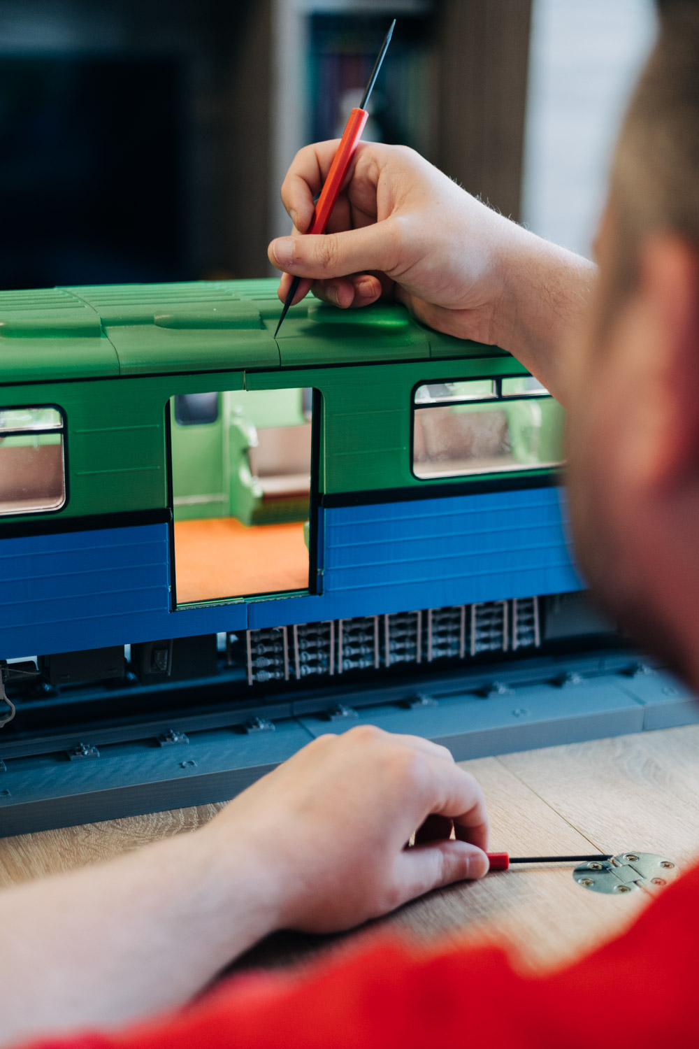 Felül zöld, alul kék, belül világít, és nagyon ismerős a hangja. Ez az egy méter húsz centis metrókocsi pontosan olyan, mint az eredeti, 18,8 méteres volt, amit Tamarának becéztek a BKV dolgozói. Tamara volt az első kocsitípus, amely a Szovjetunióból érkezett, ezzel kezdődött a metróközlekedés Budapesten a hetvenes években. Az úgynevezett Ev-kocsik a Deák tér és az Őrs vezér tere között jártak, még bőrüléseik és fából készített belső alkatrészeik is voltak. Az 1:16-os méretarányú kis Tamara egy újpesti lakás padlóján áll, így az ember a tetejét is alaposan szemügyre tudja venni, amit utasként nemigen tehet meg.
