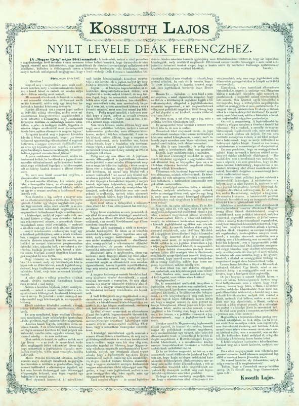 A megegyezést bíráló kortársak között volt Kossuth Lajos is, aki az 1867-es Kasszandra-levél címen ismert írásában adott hangot elégedetlenségének.
